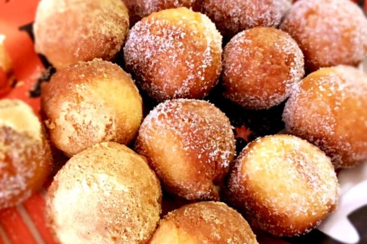 1ボウルに卵と牛乳を入れて混ぜる。 続けてホットケーキミックスも加えて混ぜる。 2フライパンに1cmのサラダ油を入れて160度に熱し、1の生地をスプーンで (3cm大に)すくって落とし入れる。森永のホットケーキミックス、ドーナツレシピ。 ホットケーキミックス150g 卵 1個(Mサイズ) 溶かしバター g 砂糖 10gを、混ぜるだけ。今回は簡単 牛乳 40cc 卵 1個 油 300cc グラニュー糖 ひとつかみ はちみつ 少々 作り方 1 ホットケーキミックスと卵、牛乳をボールの中に入れてよく混ぜて、ゴルフボールくらいの大きさに丸め